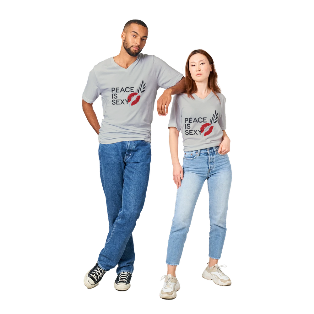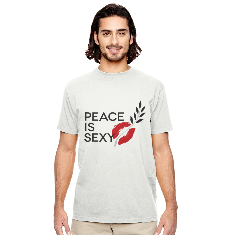 Shop our Peace Gear We believe that peace needs a re-brand. That's why we came up with the Peace is Sexy line. Unisex tank Shop now Unisex V neck Shop now Womens racerback tank Shop now Womens ribbed tank Shop now Unisex raglan Shop now Unisex organic crew Shop now Unisex pullover hoodie Shop now Enamel mug Shop now Phone case Shop now Want to support peace? Check out all our peace gear Shop now